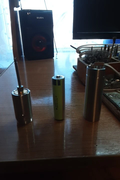 Опасная вещь. 21700 туда встаёт. Всё сделано из металла, но пластик, в который запечатан терминал плюсового контакта лопнул. Также, есть вероятность замыкания аккумулятора в корпусе прибора в районе опять-таки плюса. После пробного включения от свежезаряженного аккума жало нагрелось до красного свечения, что, мягко говоря, не соответствует нормальной паяльной температуре... Спорить и возвращать не буду, пускай пока полежит, может что-то дельное сделаю из него когда-то. Но цена существенно завышена.
