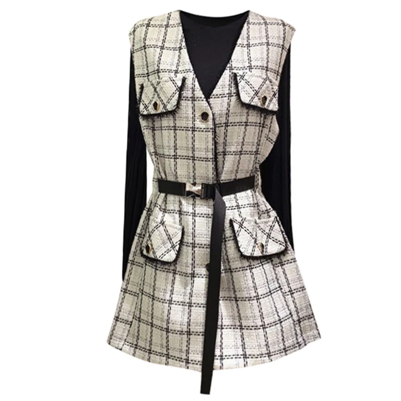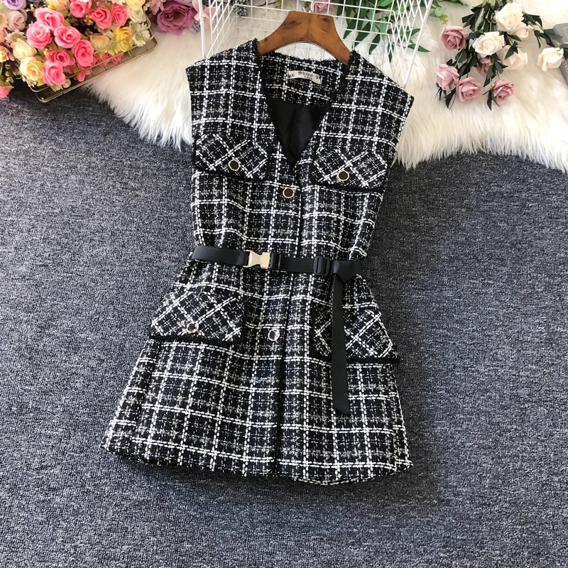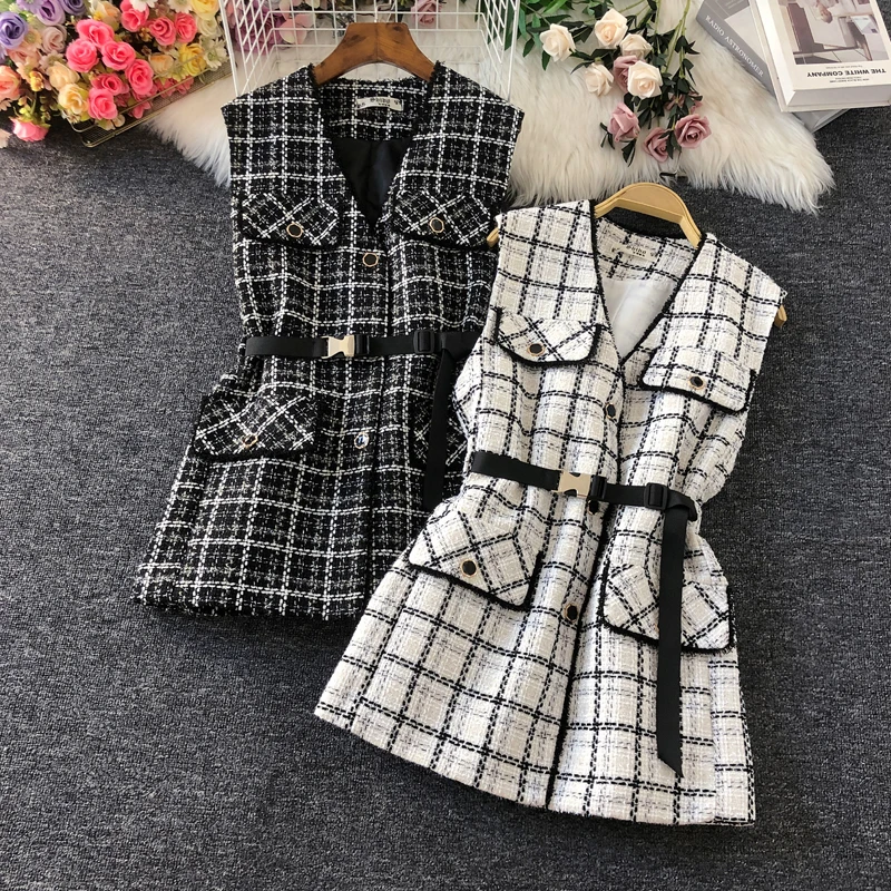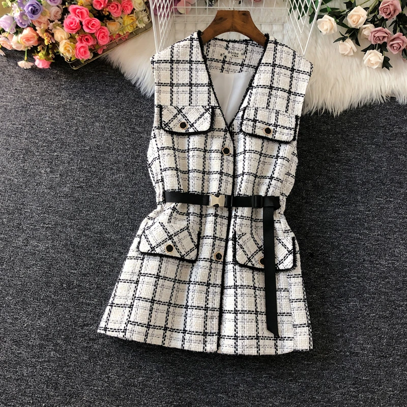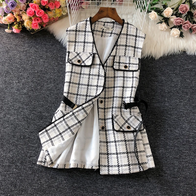 Осенне-зимний шерстяной жилет в клетку, тонкий женский жилет с V-образным вырезом