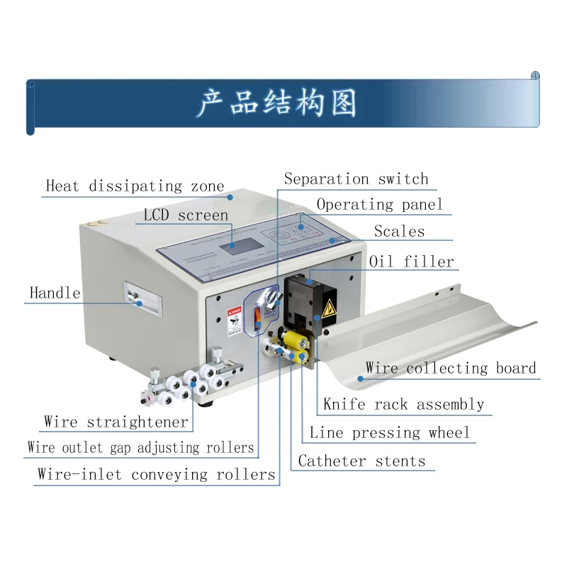 Наш продукт предназначен для использования в режиме общения с человеком-машиной с ЖК-экраном, с приятным внешним видом, простой работой, удобным обслуживанием, стабильной производительностью, скоростью, точностью и более высокими основными функциями. Длина провода может установить произвольные, thrum и параметры конца линии также могут в соответствии с запросом клиента изменить, различная степень отделки зачистки проводов, также имеет линию высокого напряжения линии, корпус ножниц и т. Д. Функция