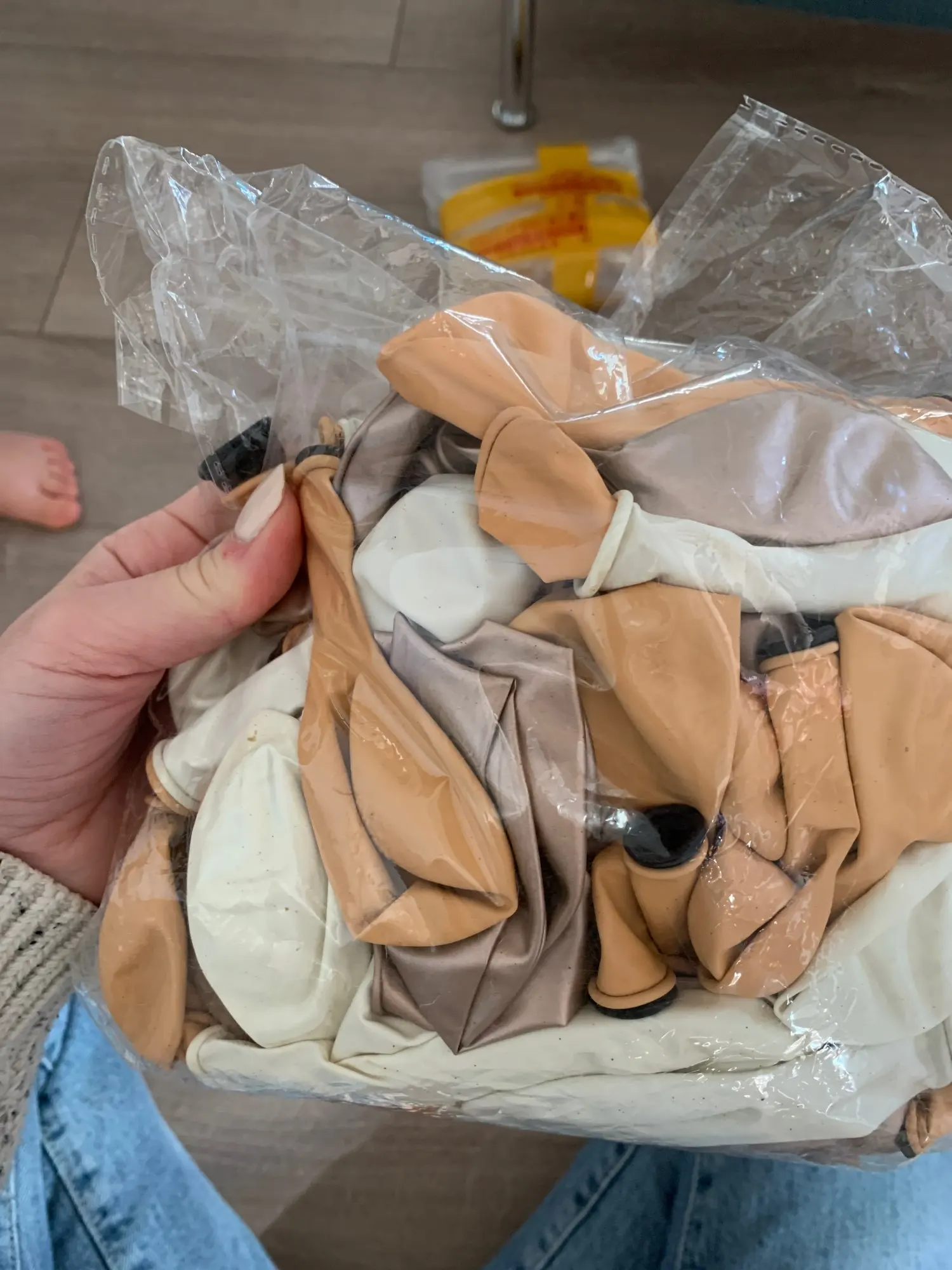 Очень красивый воздушный шар хорошего качества, но трудно надуть, потому что они удваиваются, чтобы иметь красивый бежевый цвет обеспечивают электрический воздушный насос. В противном случае вы можете сначала удвоить их, но цвет немного более мягкий
