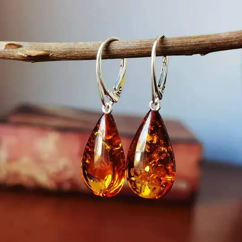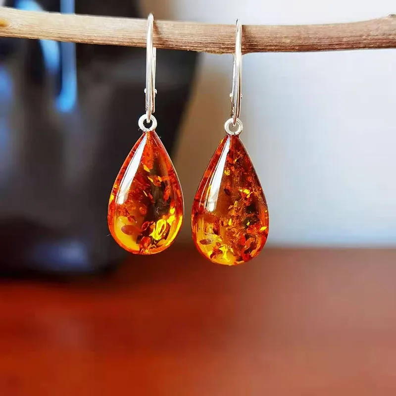 Женские серьги из серебра 2022 пробы, с натуральным янтарем