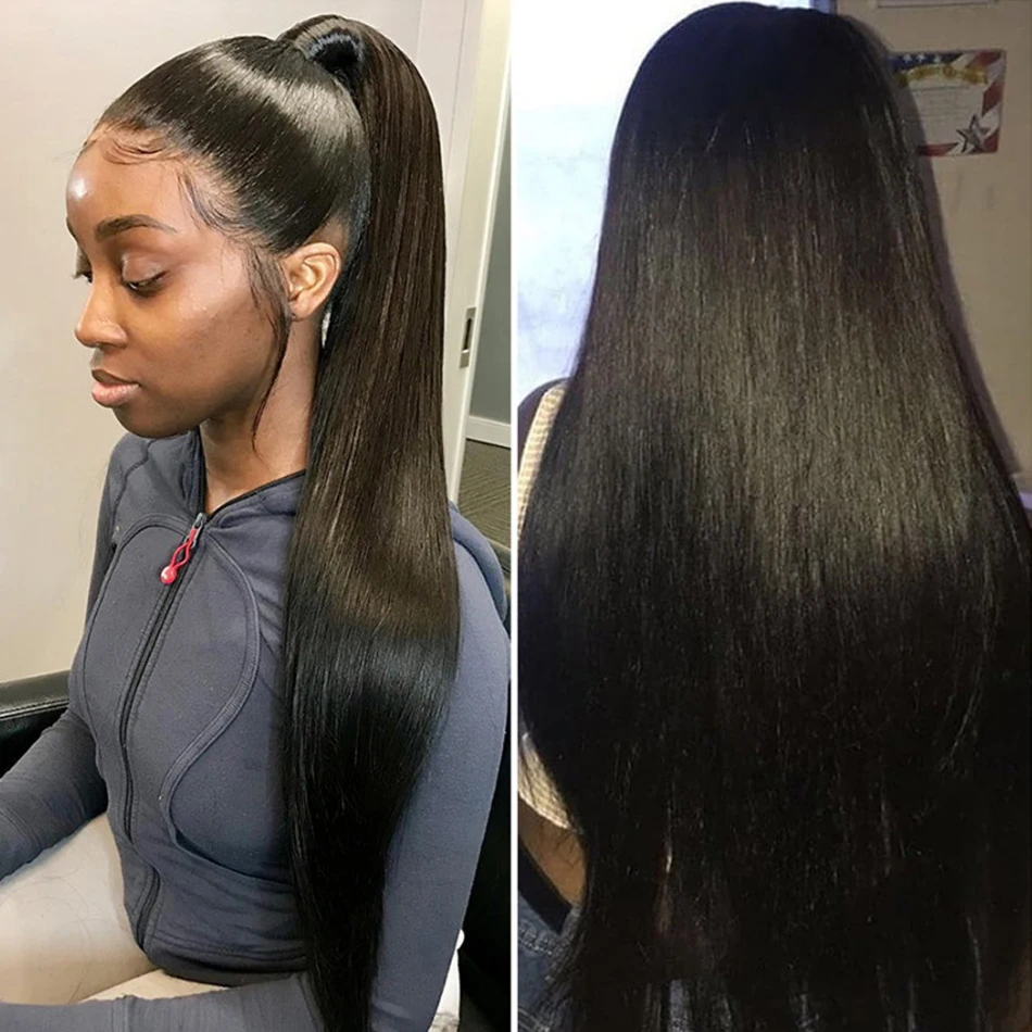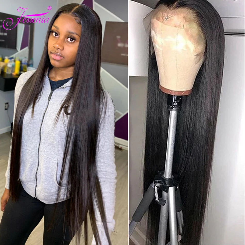 30 36 дюймов прямые синтетические волосы 4x4Lace закрытие парик бразильский волос предщипанный бесклеевой 150 плотность 100% Виргинские человеческие челосы, передние парики
