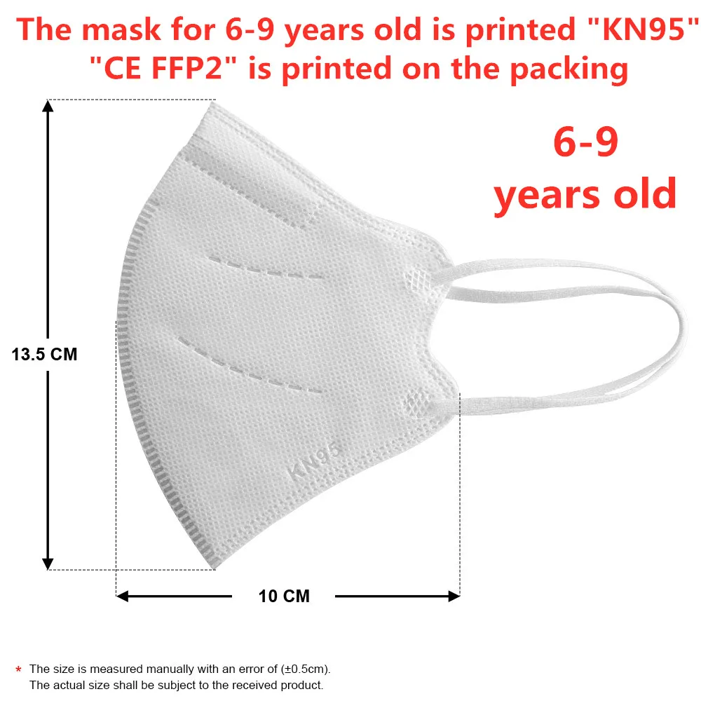 10-100 шт. kn95mask Детские шапочки для рта Детские маски для лица mascarilla niño 95% фильтр kn95 infantil для детей от 6 до 9 лет ffp2mask