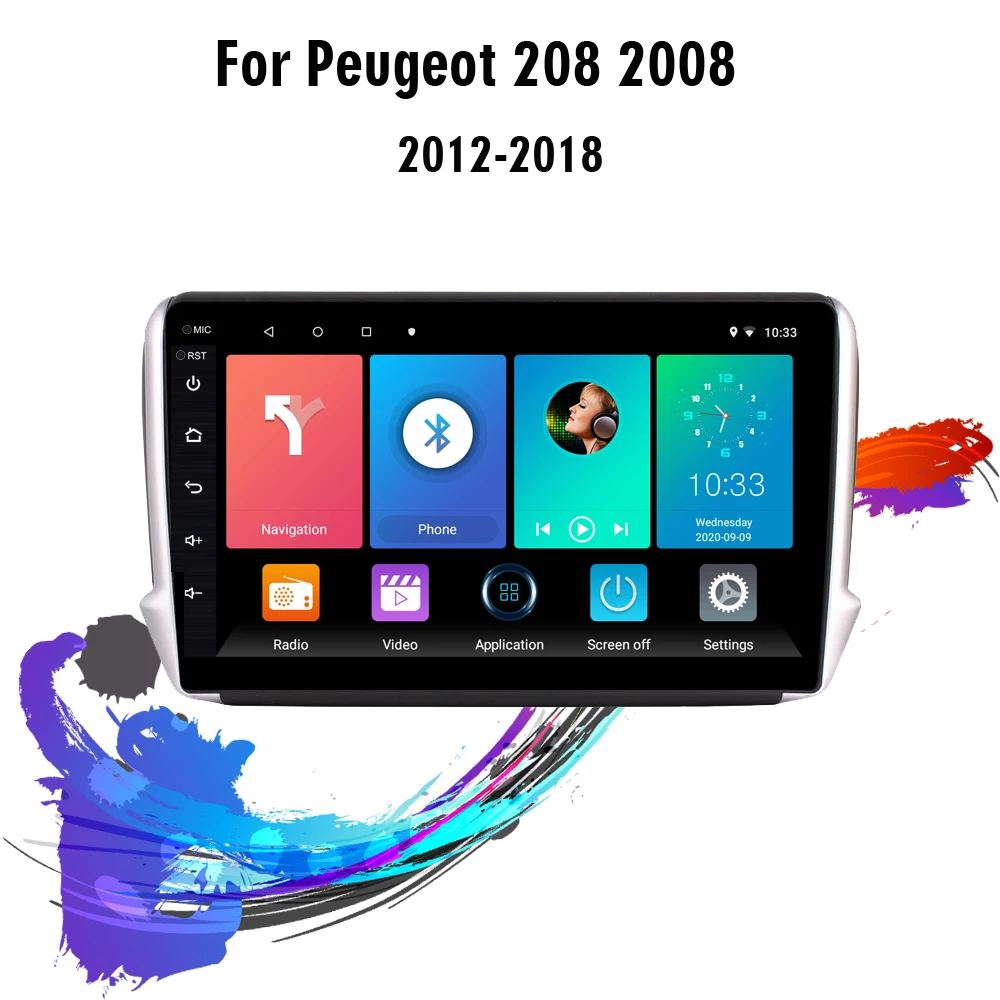 Автомагнитола Магнитола Мультимедиа автомобиля Головное устройство easteregg с GPS-навигацией, 2 Din, автомобильное радио, мультимедийный плеер для Peugeot 2008, 208, 2012-2018, Android, стерео, Wi-Fi