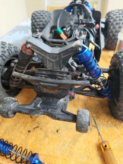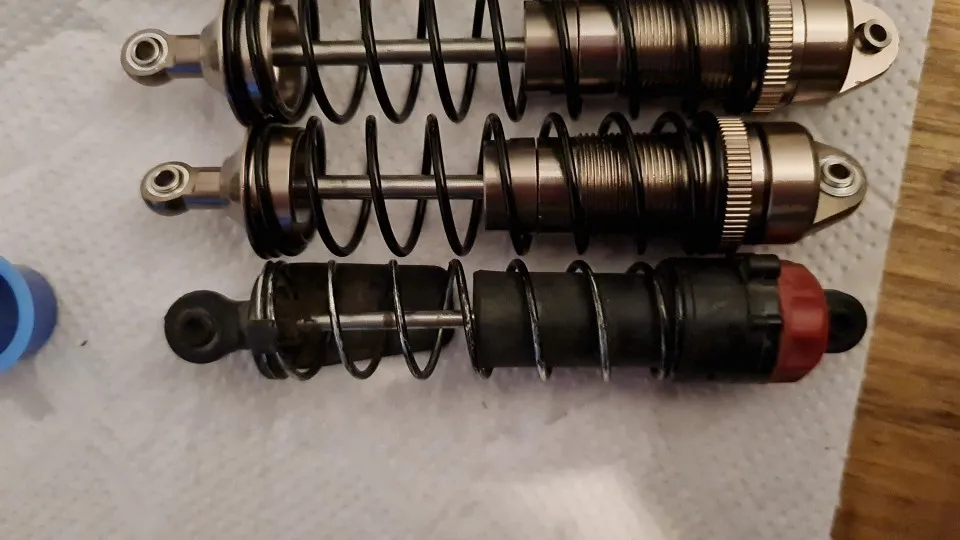 Я удивлен и удивлен, бег задних амортизаторов такой же, как и передние, просто самый длинный стержень. Я еще не пробовал их. Они не заполнены маслом, есть только половина.