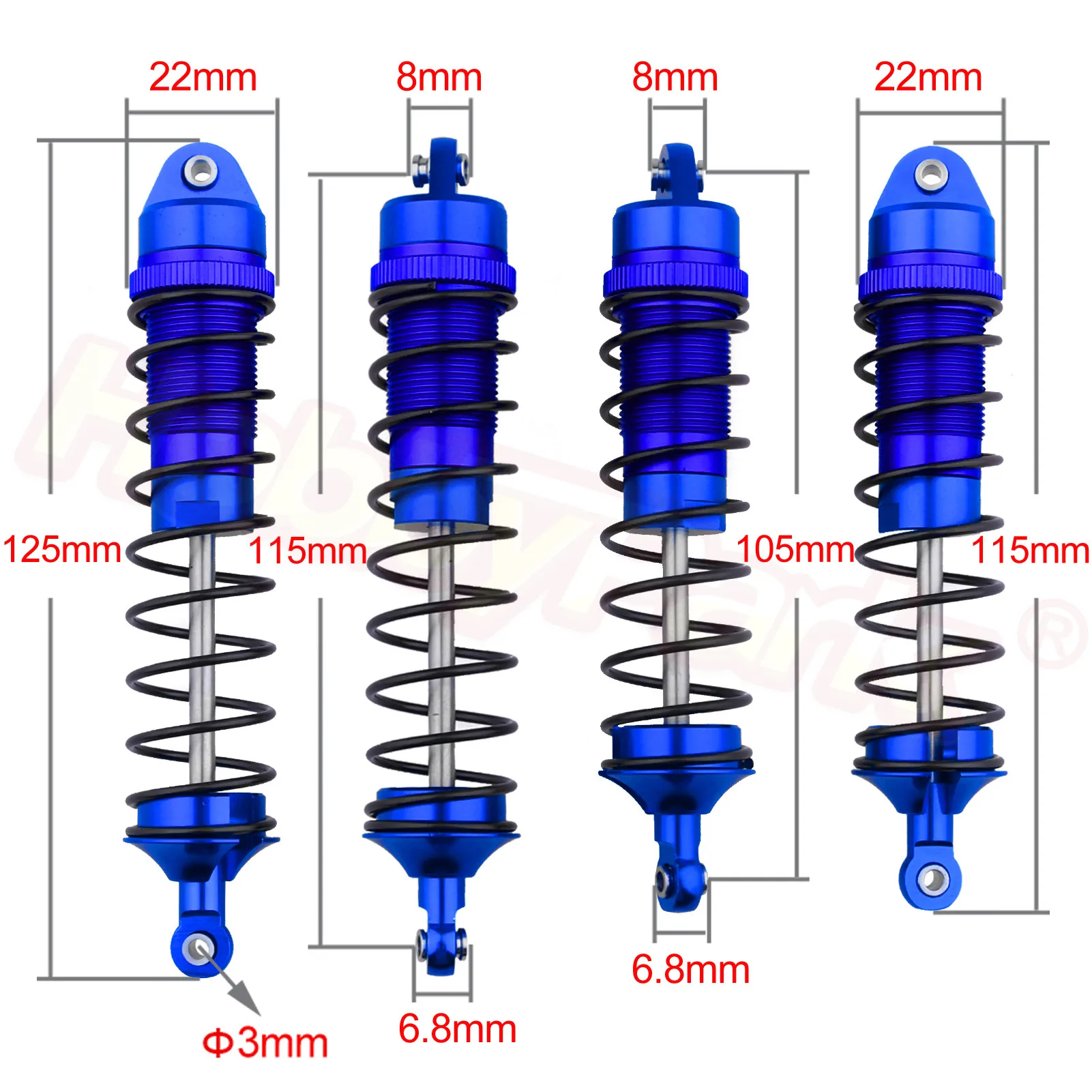 4 шт., алюминиевые передние и задние амортизаторы для Arrma 110 Granite 4X4,Typhon