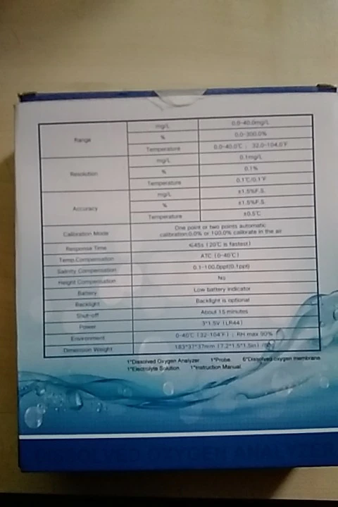 D09100-это точный инструмент для измерения растворенного кислорода и температуры. Встроенный микрокомпьютерный процессор вычисляет и компенсирует все данные измерений, связанные с растворенным кислородом и температурой. Чехол этого инструмента является водонепроницаемым. Измеритель Растворенного кислорода (единица измерения): процент насыщенности (%) или концентрации кислорода (мг/л) зонд для растворенного кислорода представляет собой пленку с поляризационным датчиком и термистором для измерения температуры и компенсации температуры. Проницаемая мембрана отделяет измеренный раствор от чувствительного электрода, но позволяет кислороду проходить через мембрану для реакции, и концентрацию можно измерить.
