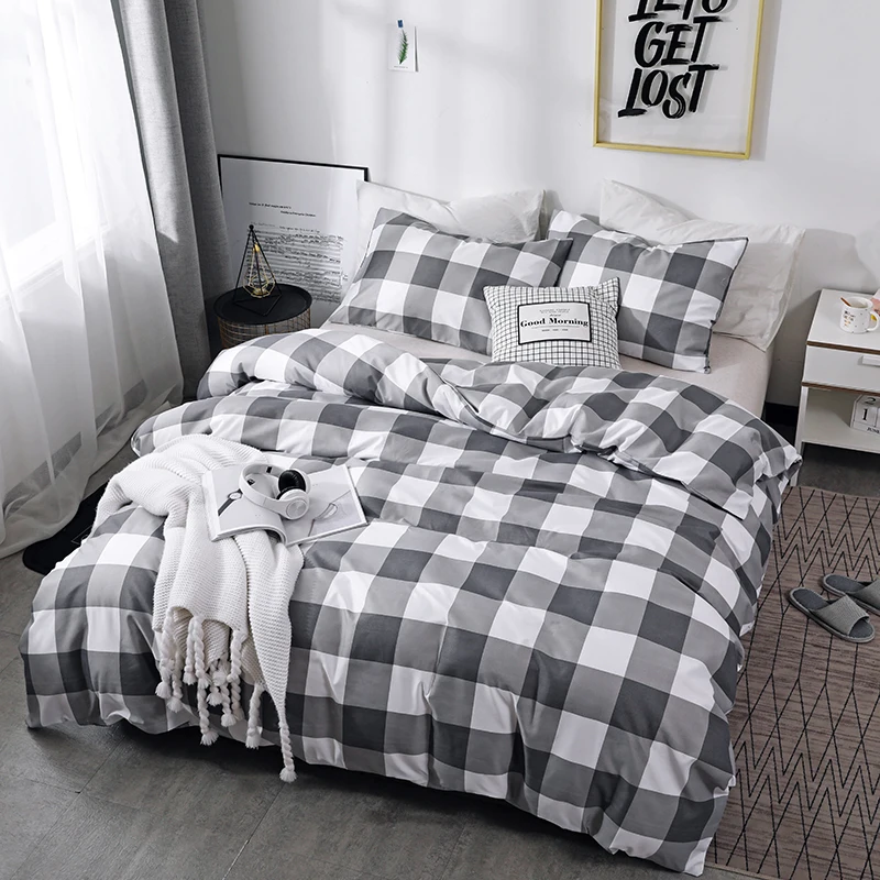 Комплект постельного белья в клетку, пододеяльник с наволочками, белый и черный цвета, для мальчиков и девочек