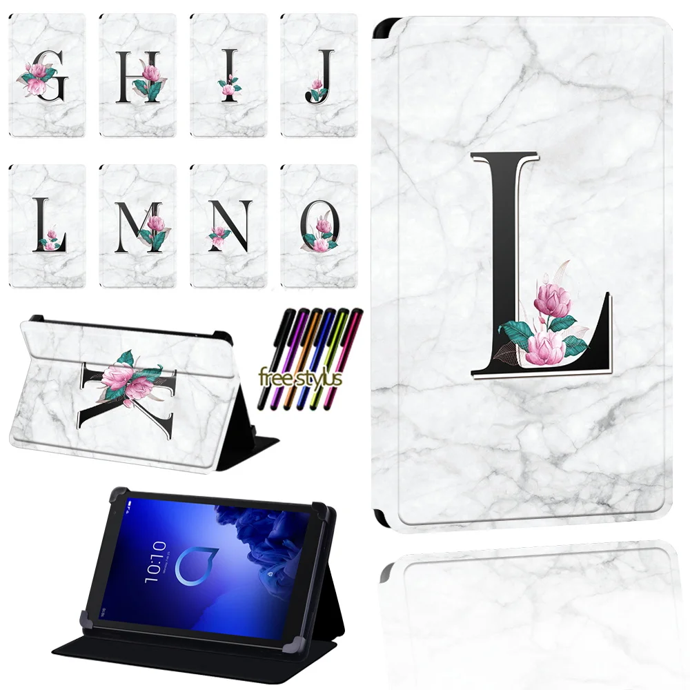Чехол для планшета Alcatel 1T 7 103T 8 10A3 10, Белый Мраморный складной защитный чехол с надписью, устойчивый к царапинам, чехол + ручка