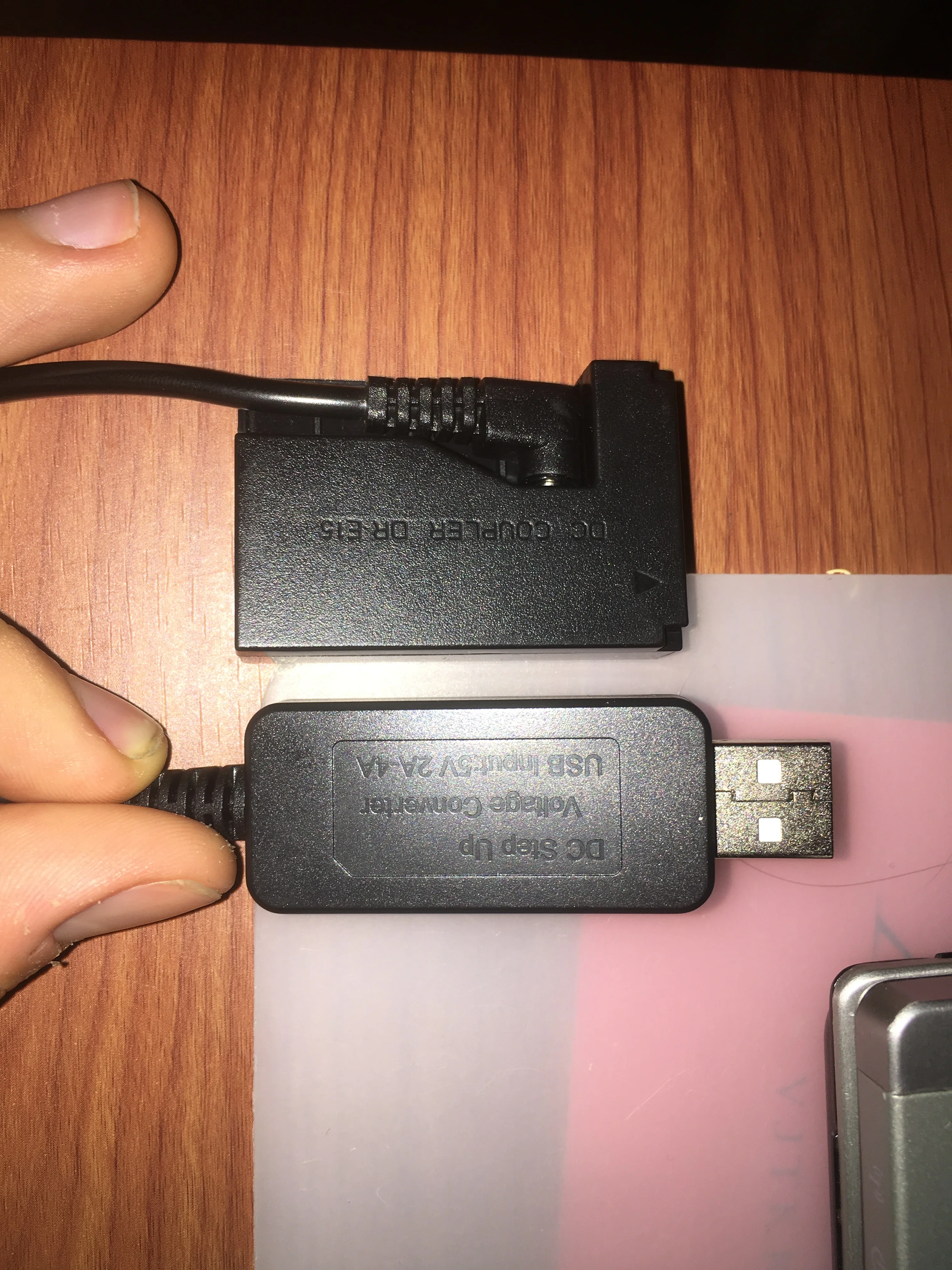 Lp E2-это 7,2 В вольтовый аккумулятор, USB-это всего лишь 5 В, поэтому устройство не может поставить питание на камеру