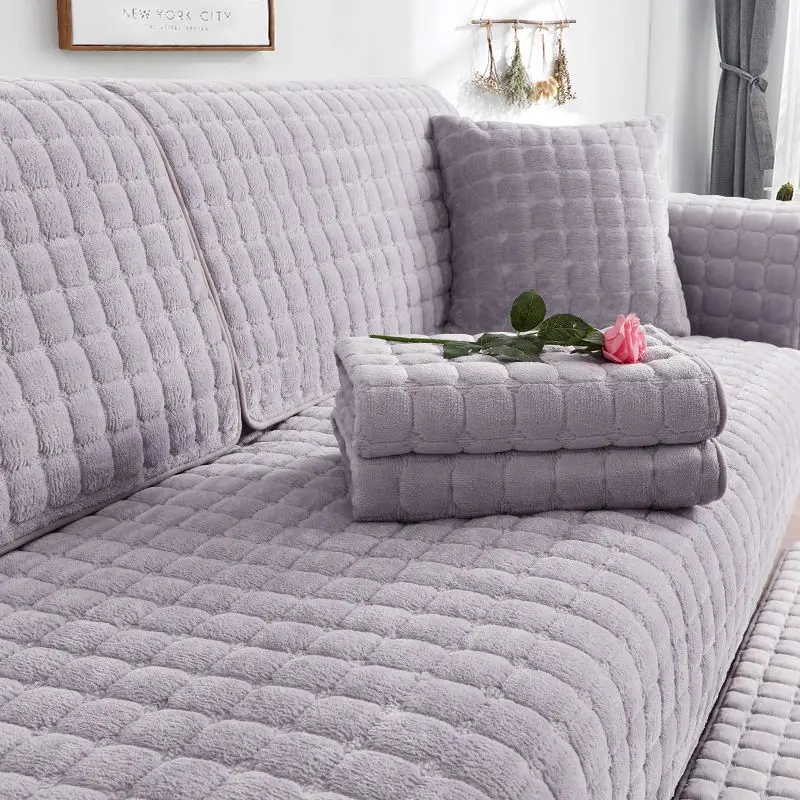 Тканевый короткий плюшевый чехол для дивана, нескользящий всесезонн...