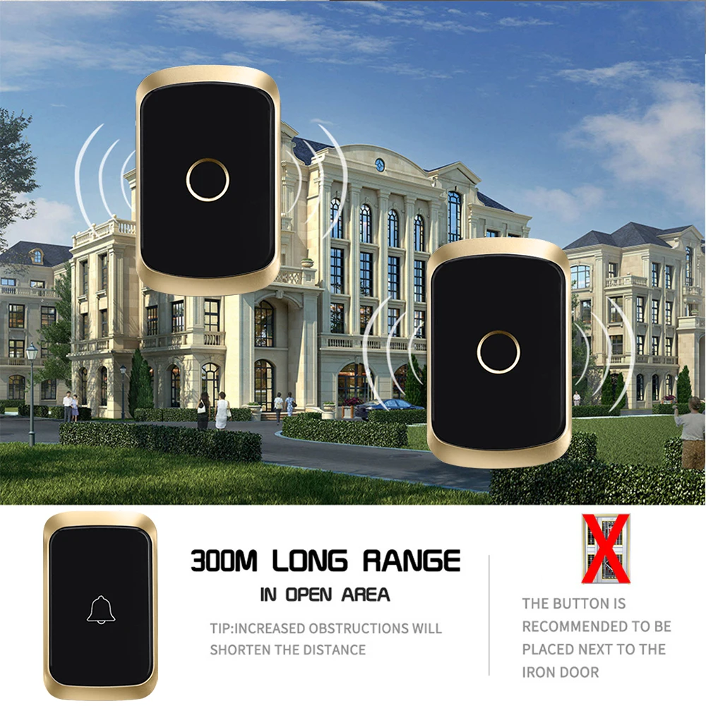 Беспроводной дверной звонок CACAZI, водонепроницаемый, 433 МГц, 300 м, 36 песен