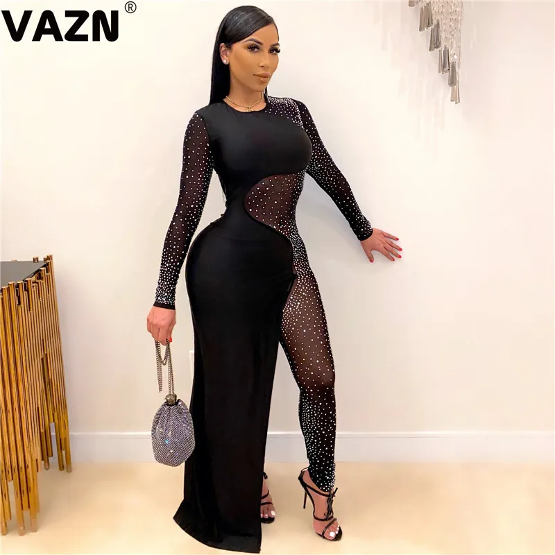 Женский эластичный комбинезон с длинным рукавом VAZN, пляжный бандажный комбинезон с круглым вырезом, брюки-комбинезоны