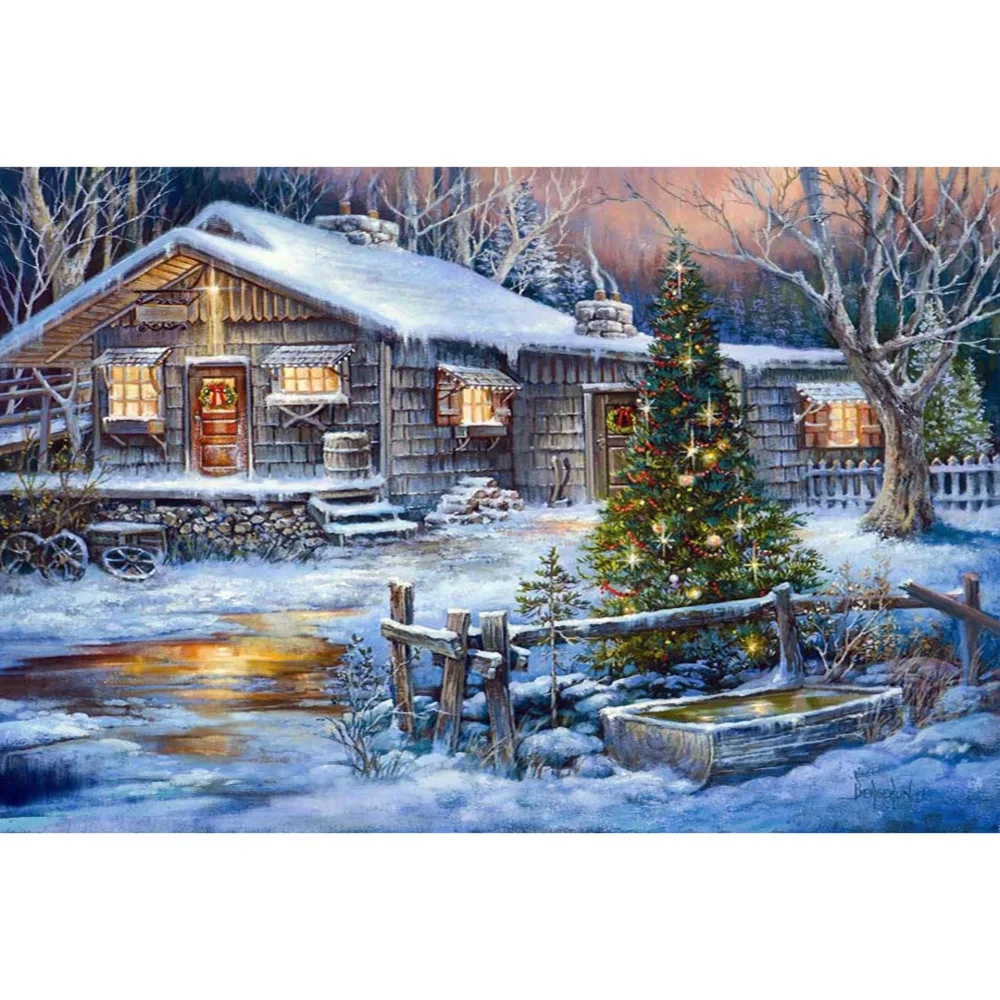 Пейзаж Meian, снежный дом, полностью сверлильный Круглый 3D набор для алмазной живописи своими руками, детская Рождественская фотовышивка Стразы