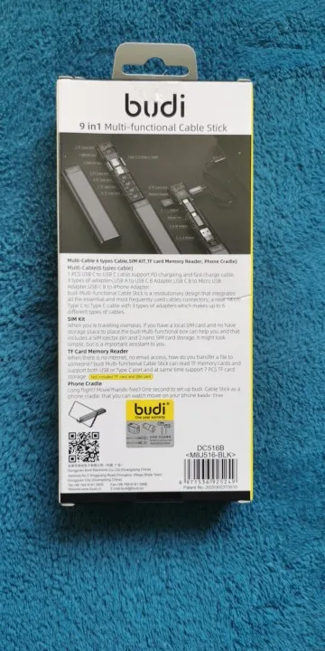 Многофункциональная кабельная палка budi является революционной конструкцией, которая объединяет все основные и наиболее часто используемые кабели соединителей; кабель типа C-Type C около 29 см с 3 адаптерами типа s, которые составляют до 6 кабелей различного типа s.