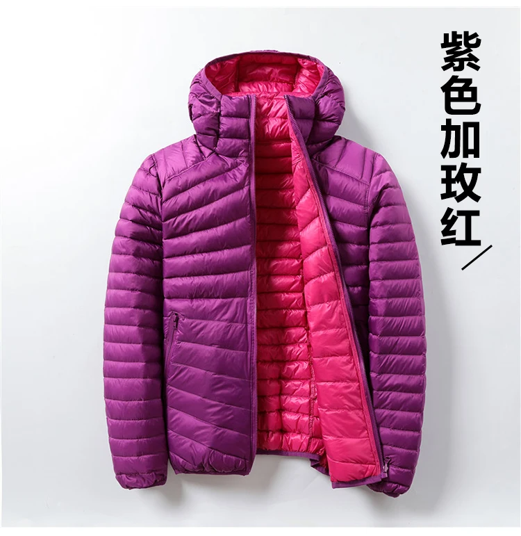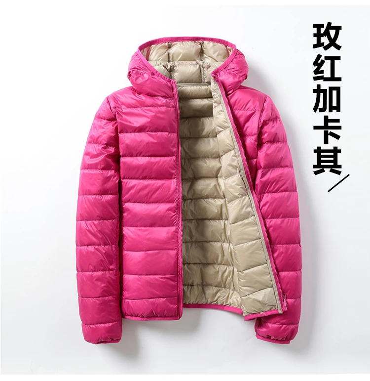Для женщин куртки брендовые пуховики и парки для женщин ультра светильник Базовая куртка с капюшоном Перо Famale куртки двойной боковой Реверсивный теплое пальто