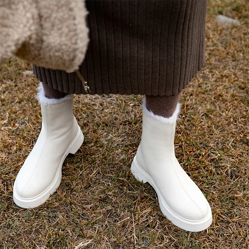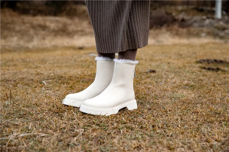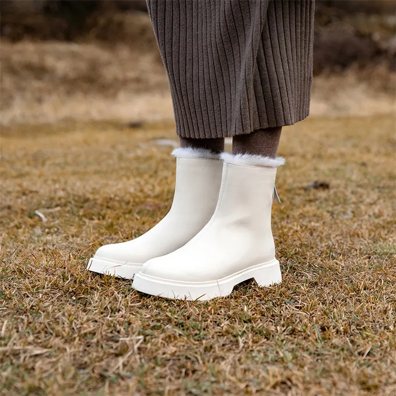 Meotina/зимние ботинки; Женские ботильоны на платформе и среднем каблуке; Короткие ботинки на массивном каблуке; Женская обувь на молнии; Зимняя обувь на меху; Цвет бежевый; Большие размеры 43