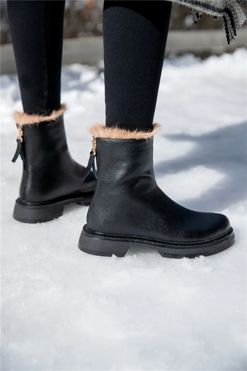 2020 г. Зимние женские ботинки теплые зимние ботинки на плоской под...