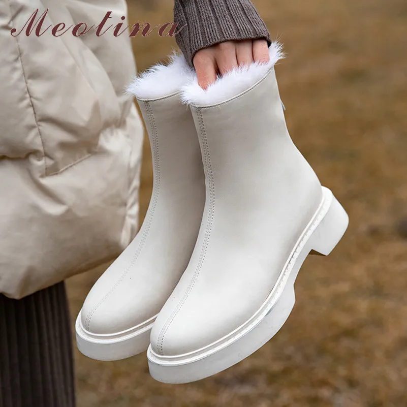 Женские ботильоны на среднем каблуке Meotina, бежевые полусапожки на молнии, на меху, большие размеры 43