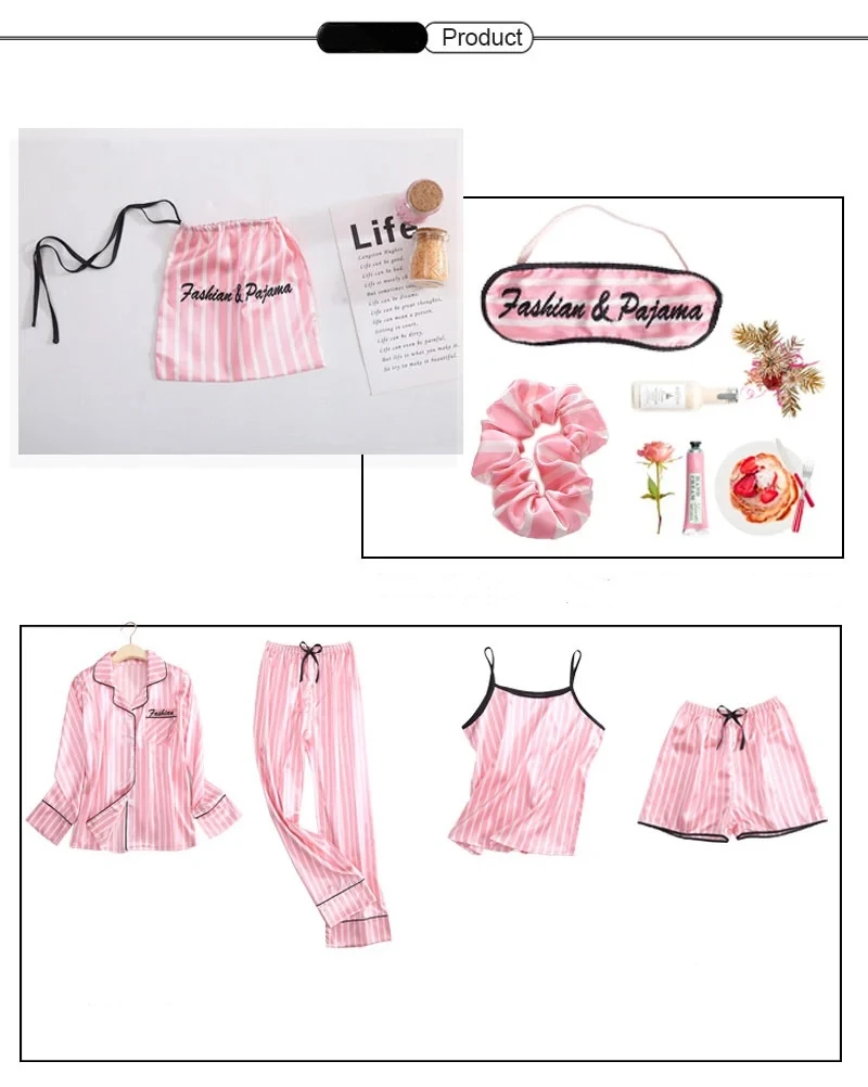 Пижамный комплект Женский, из искусственного шелка, 7 предметов