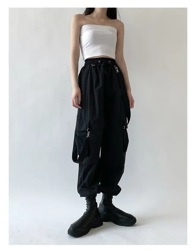 Женские брюки-карго QWEEK, в стиле Харадзюку, с высокой талией, со съемными ремешками