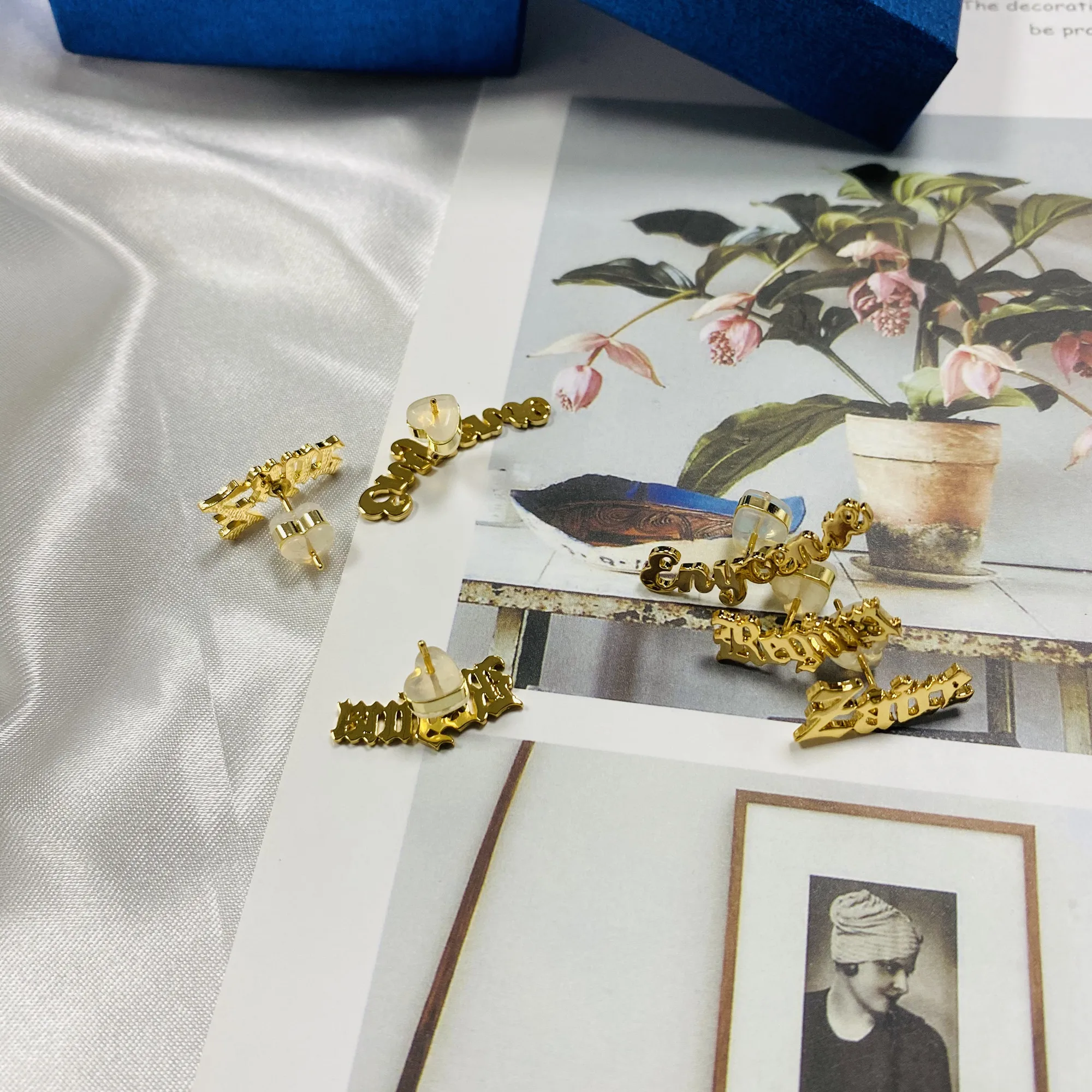 Серьги-гвоздики из нержавеющей стали с именем на заказ