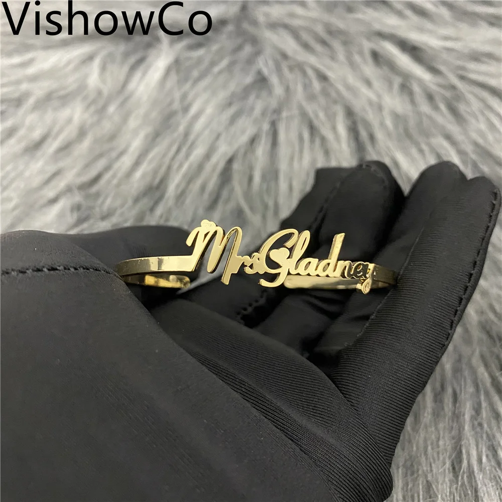Браслет с именем VishowCo на заказ, регулируемый браслет из нержаве...