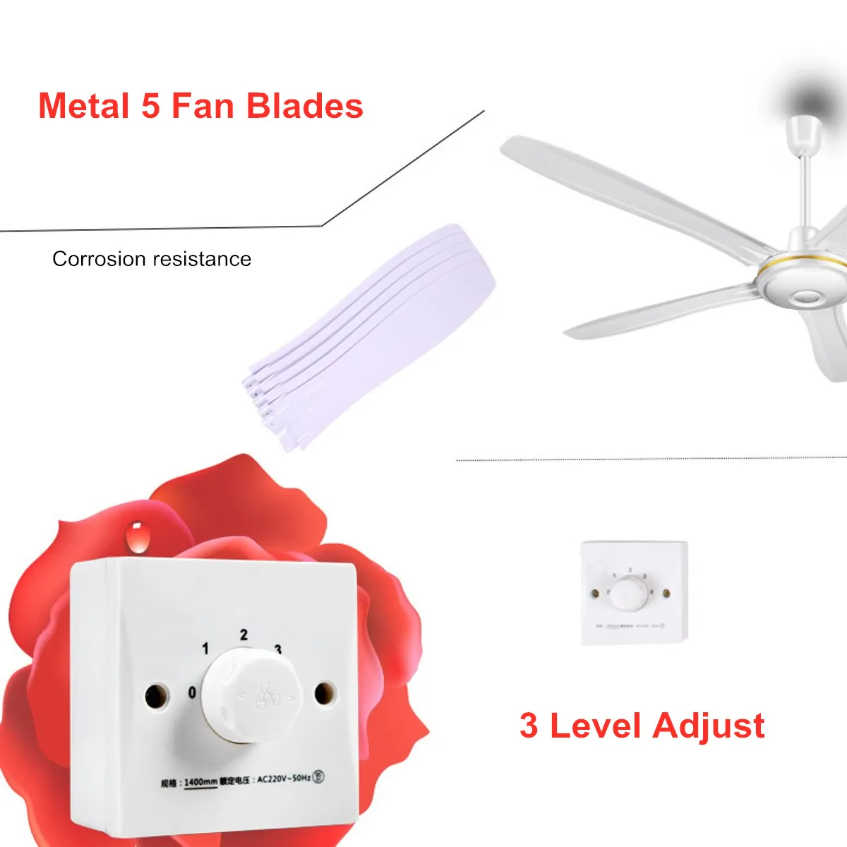 55 дюймов Большой Мощность потолочный вентилятор энергосберегающий подвесной вентилятор Бриз бытовой немой 3 уровня Электрический Потолочный охлажденный ветилятор 220V