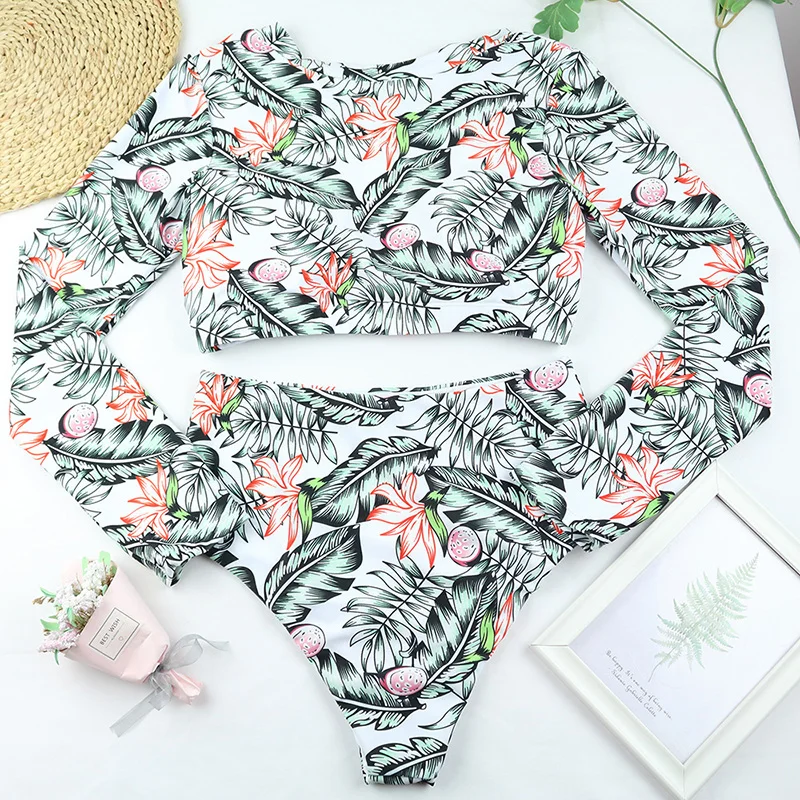 Купальник с длинным рукавом и цветочным принтом, 2021