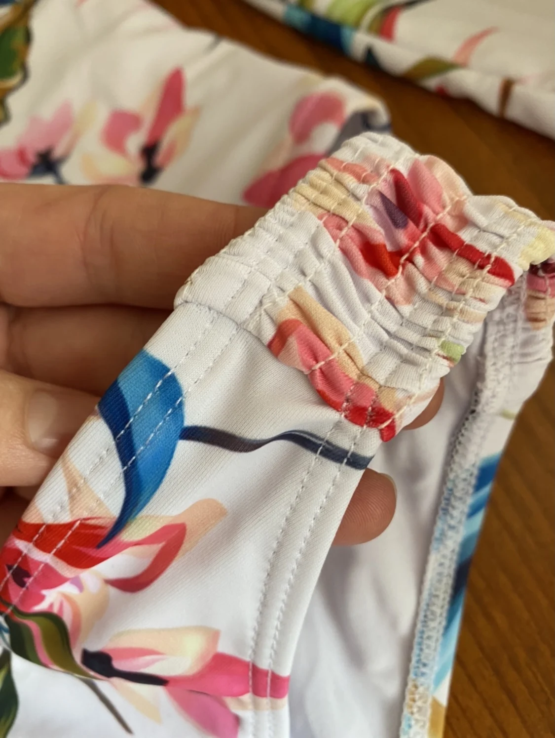 очень все даже хорошо. Очень плотный, размер соответствует описанию, только вот трусики при моих бедрах 100 очень плотно врезаются, может в воде потянутся. Верх с мягкими чашечками и с подкладкой , хорошо поддерживает. Изза плотности ткани и плохой растяжимости немножко маломерят Пошито хорошо. рекомендую ХЛ для тех кто не любит врезающееся белье брать на Л.