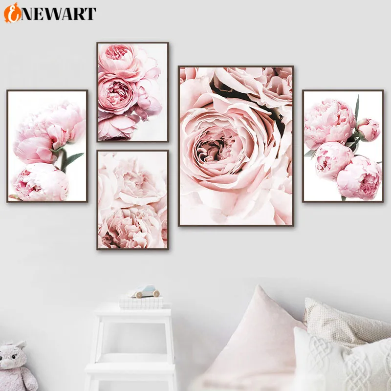 Картина на холсте с розовыми пионами, постер с цветами в скандинавском стиле, настенное украшение с цветами, декоративная картина для спальни, украшение для дома