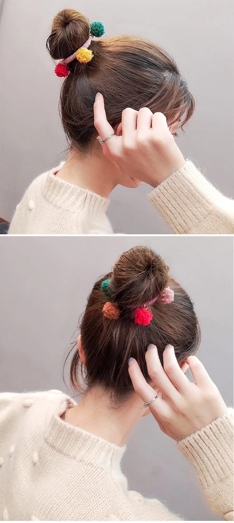 Шарик-помпон эластичные повязки для волос женский элегантный держатель для конского хвоста резинка для волос повязка на голову модные банты аксессуары для волос для девочек