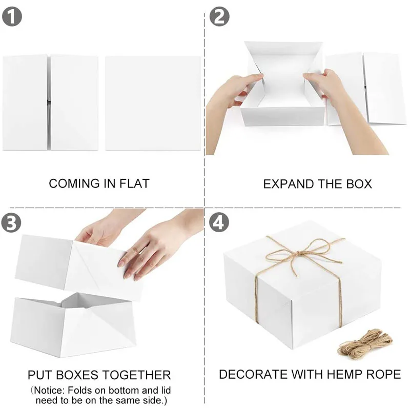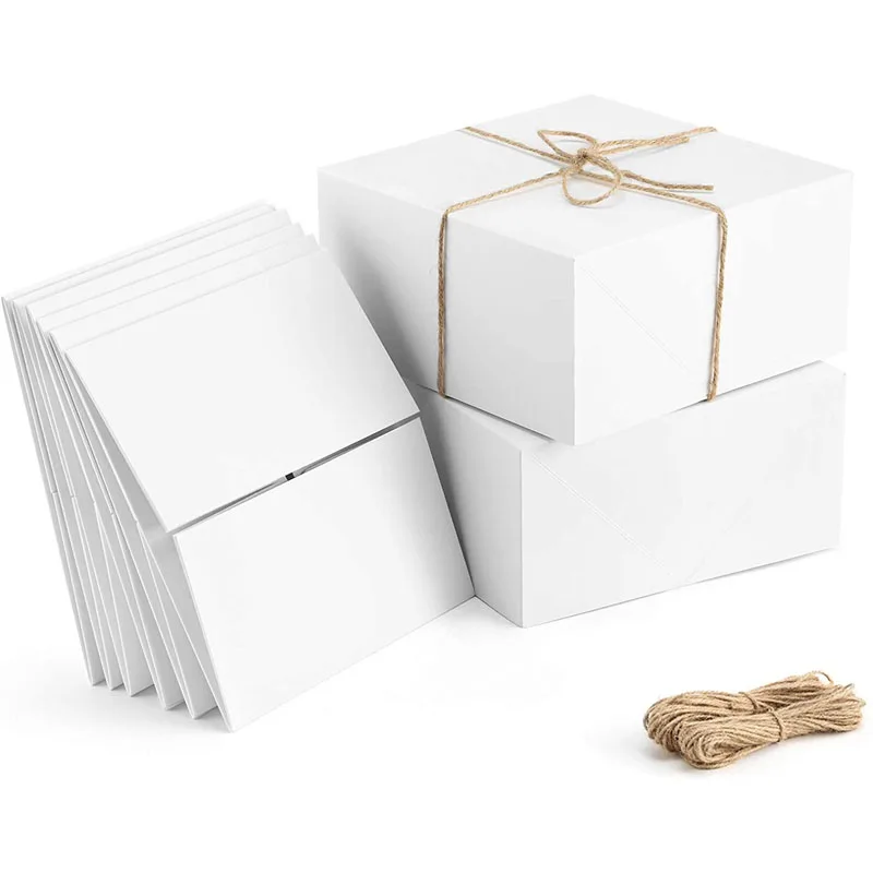 Подарочные коробки премиум-класса, 10 шт.лот, белые бумажные подарочные коробки с пеньковой веревкой 20 метров для рождественских подарков, коробки для подружек невесты