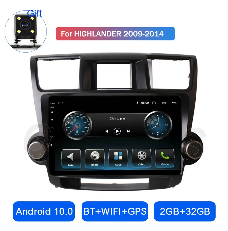 Автомагнитола для Toyota Highlander 2009, 2010, 2011, 2012, 2013, 2014, Android 10