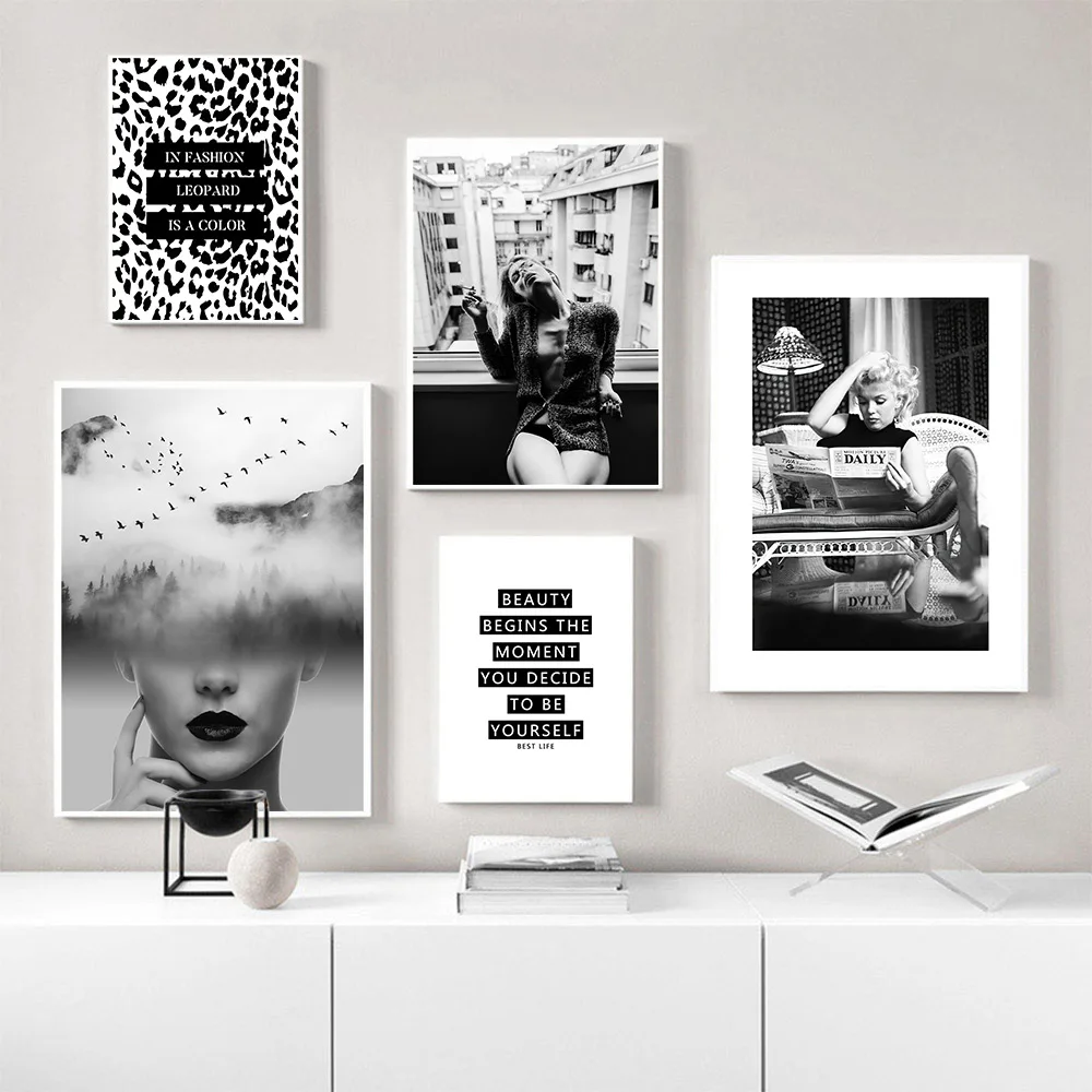 Черно-белая картина, Модные леопардовые плакаты, сексуальный постер...