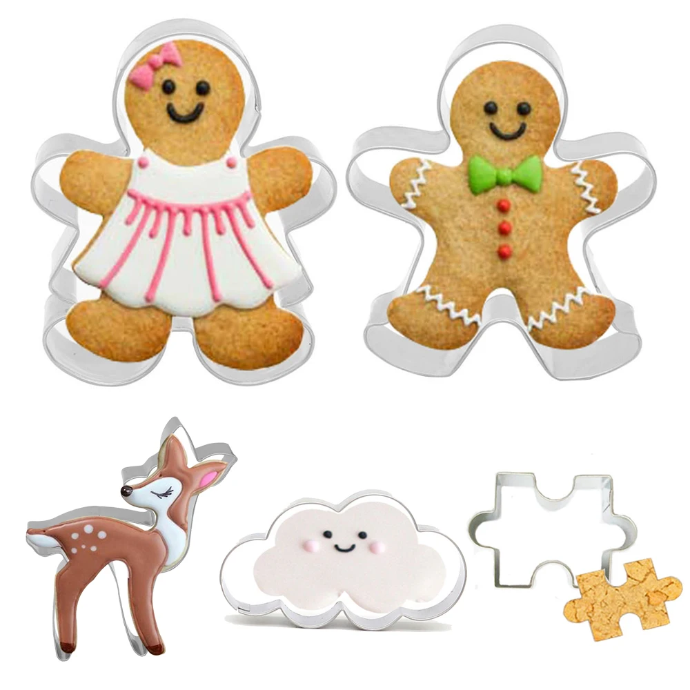 2 шт., Рождественский инструмент для резки печенья, Имбирный пряник, облако, лось, олень, форма пазла, праздничная форма для печенья, кухонный инструмент для украшения торта