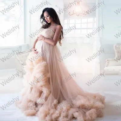 Очень пышные трапециевидные плиссированные тюлевые платья с оборками для беременных женщин милое платье без бретелек для фотосъемки длинное Тюлевое платье платья