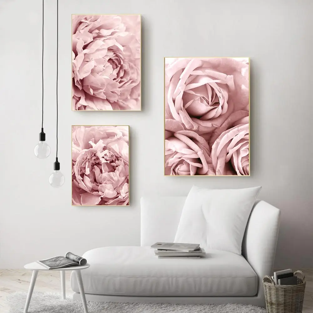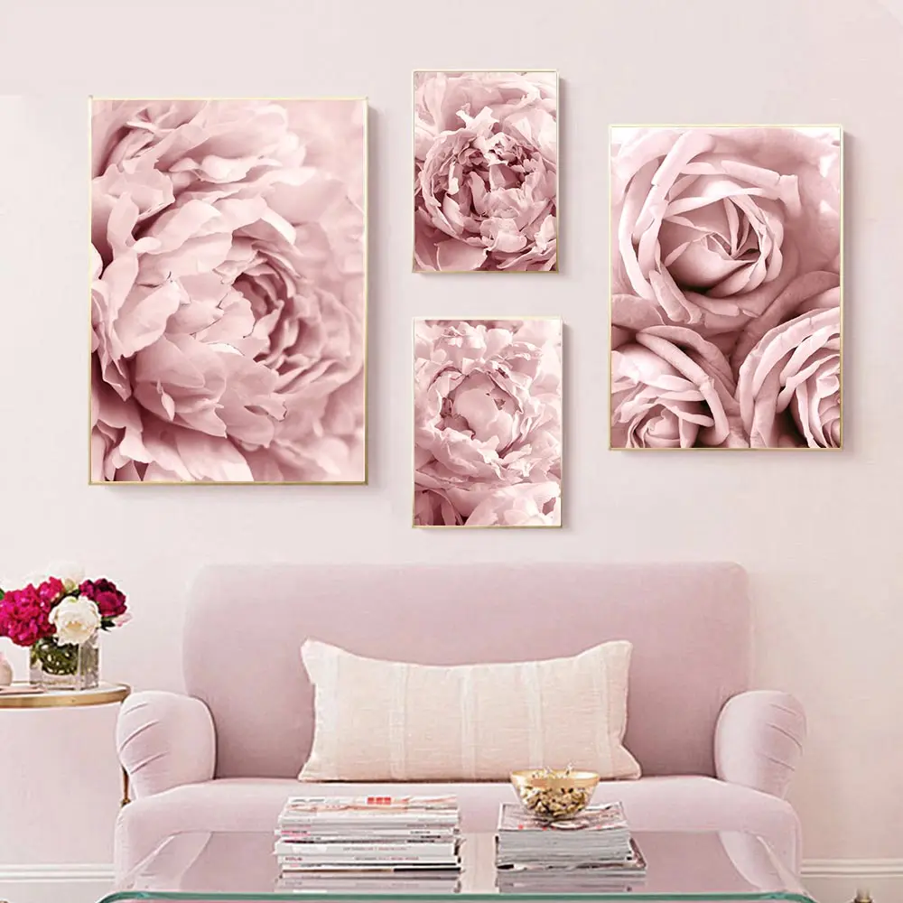 Скандинавская Картина на холсте с розовыми цветами, Настенная картина, Постер пионов, принты, скандинавские настенные картины для девичьей комнаты, украшение для дома