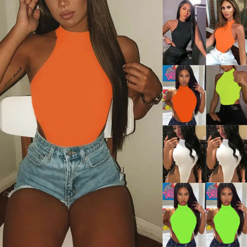 Женские сексуальные однотонные облегающие пляжные комбинезоны без рукавов с высоким вырезом