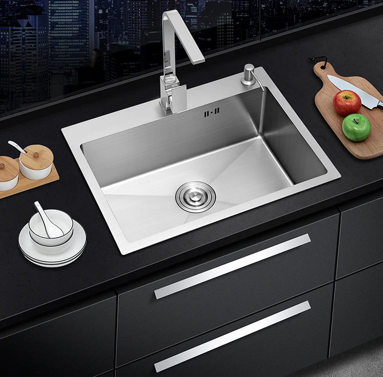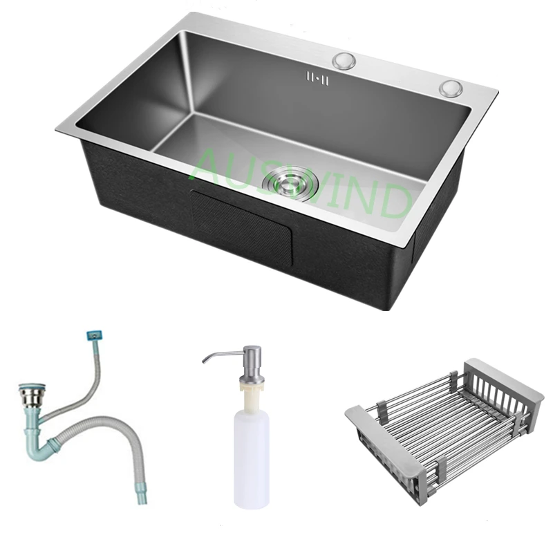 Матовая кухонная раковина из нержавеющей стали, одна чаша, над прилавком или под креплением, чаша для раковины ручной работы с аксессуарами