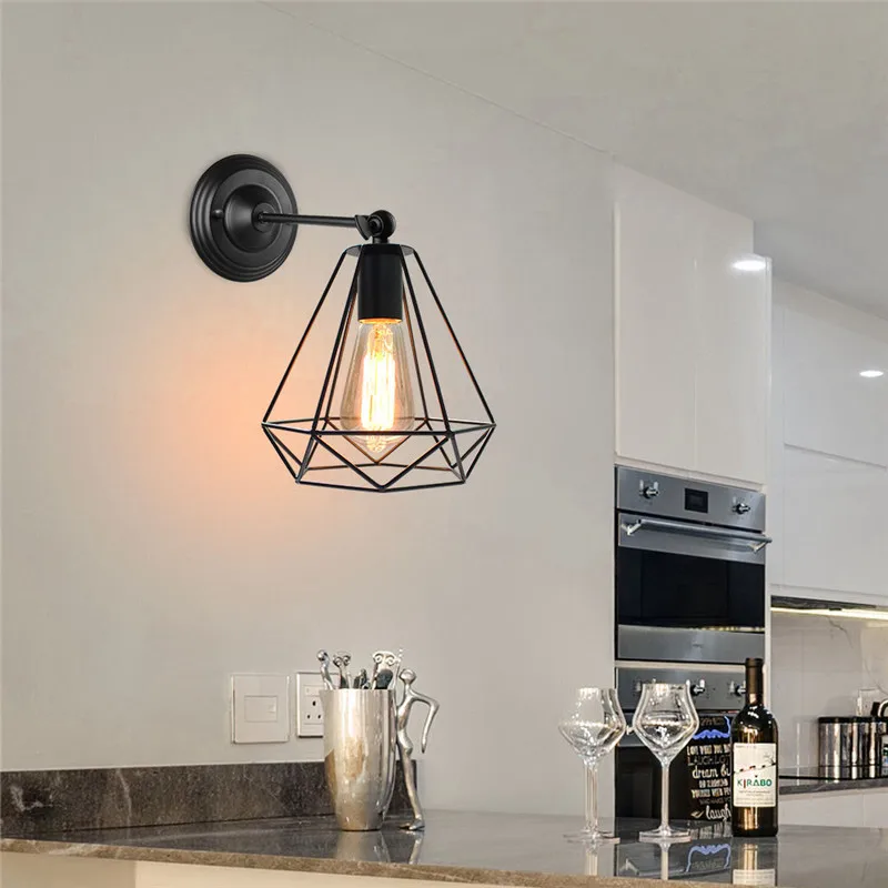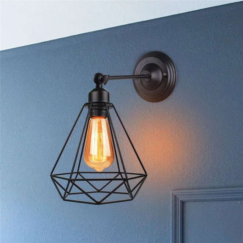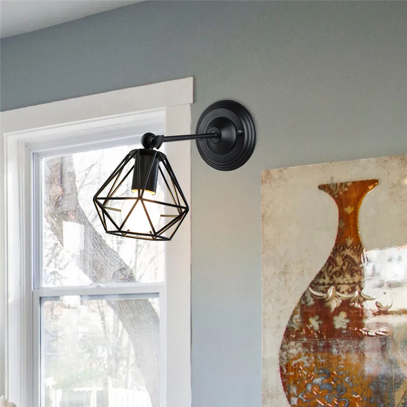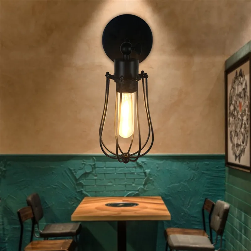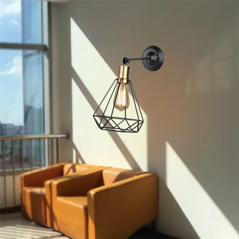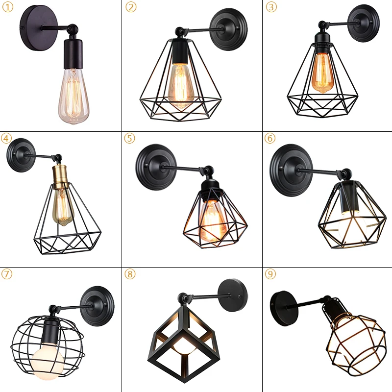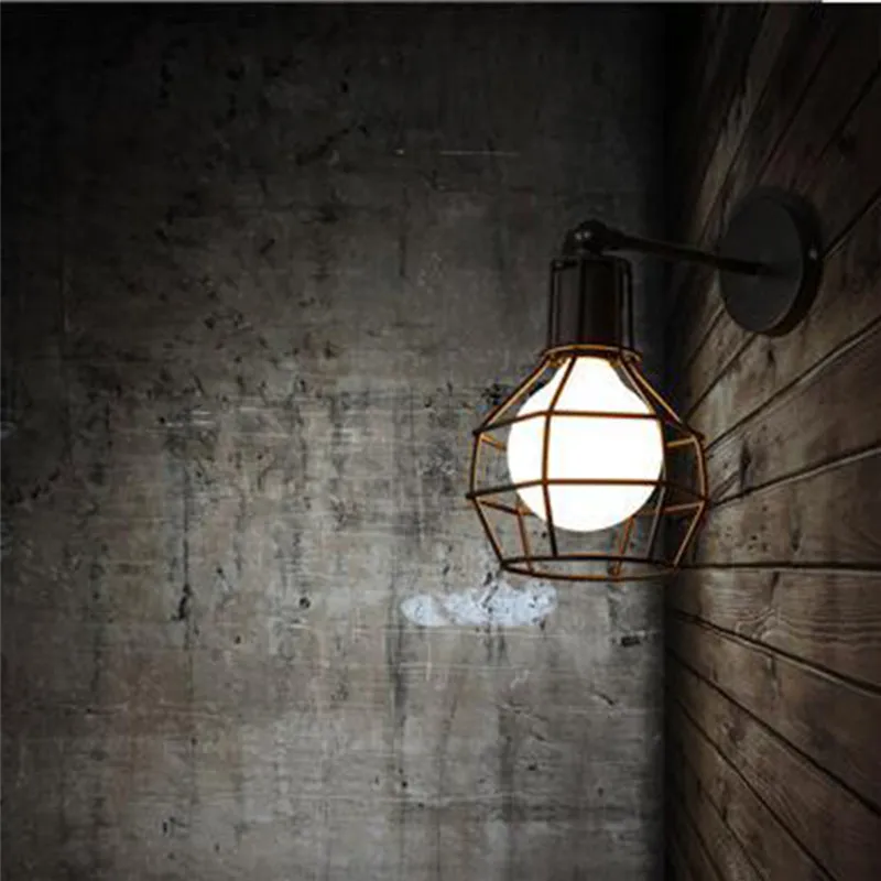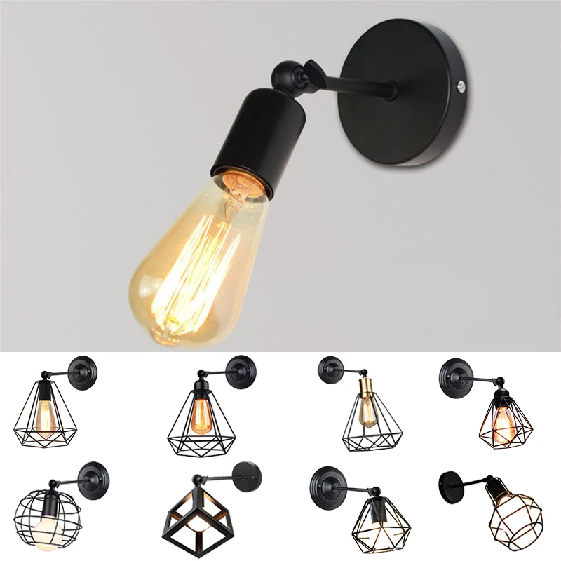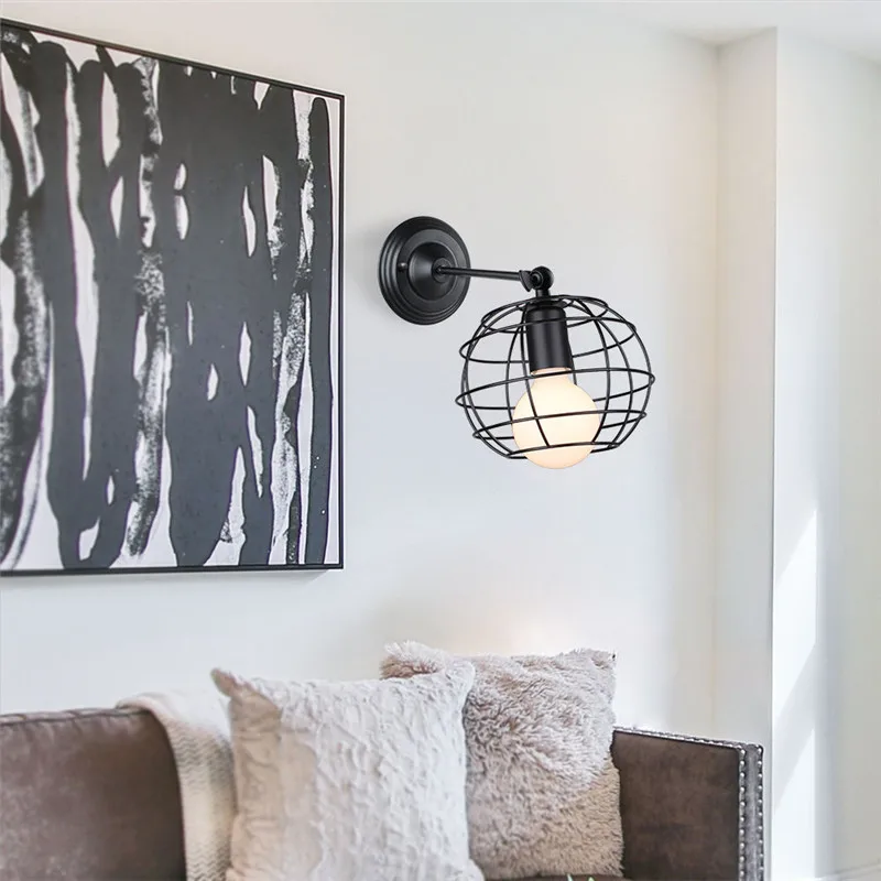 1. Винтажный регулируемый настенный светильник, металлическая клетка может защитить лампу должным образом