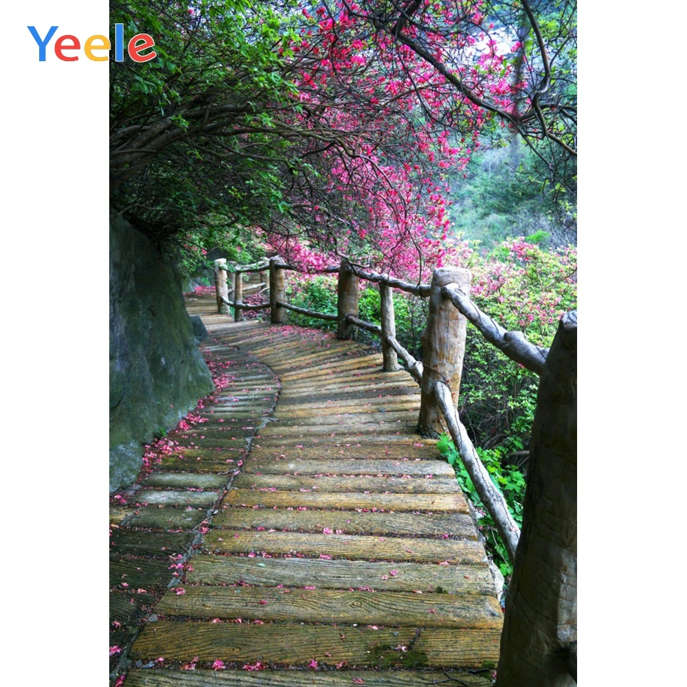 Фон для студийной фотосъемки Yeele с изображением деревянной лестницы туннеля цветов цветущих деревьев пейзажа