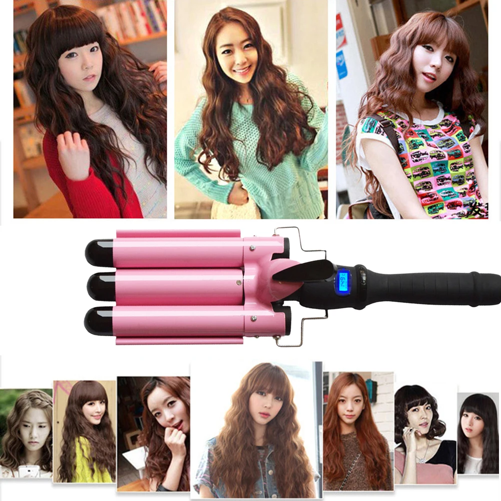 Щипцы для завивки волос 25 мм, тройная керамическая плойка для волос, инструмент для стайлинга, обжимной стайлер, регулируемый практичный инструмент с ЖК-дисплеем