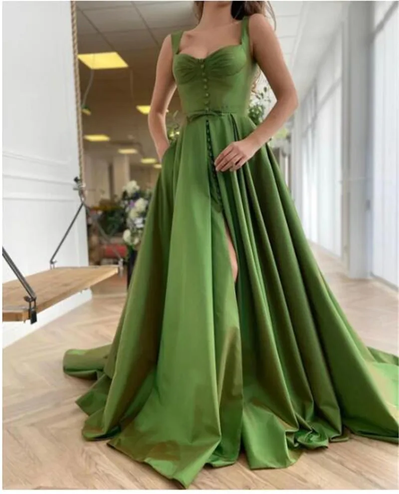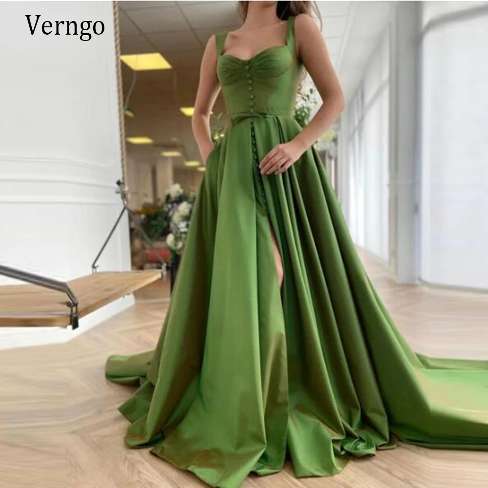 Verngo Новое переливающееся Зеленое Длинное Вечернее Платье трапециевидной формы с поясом на пуговицах с бантом и карманами из тафты 2021 выпускное платье