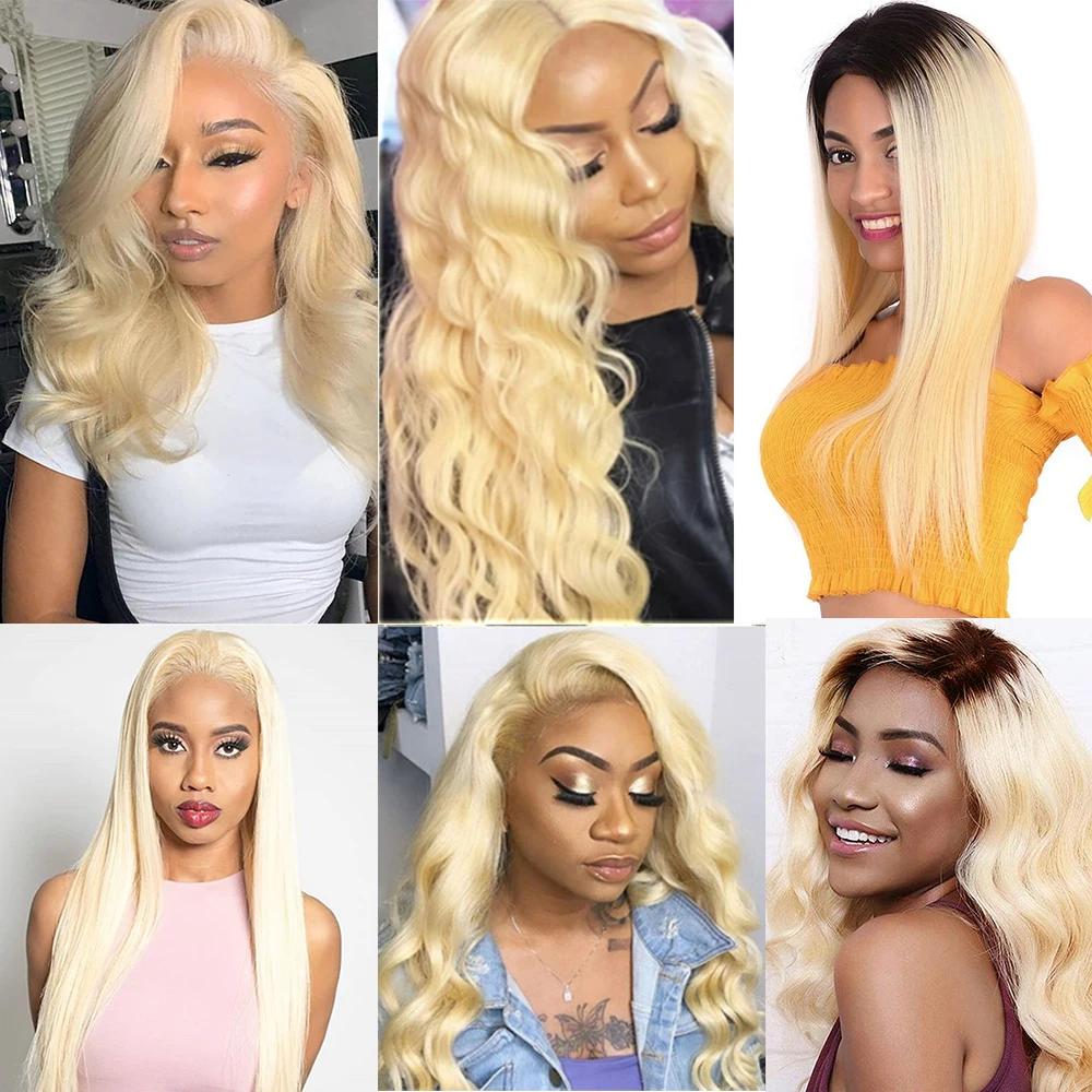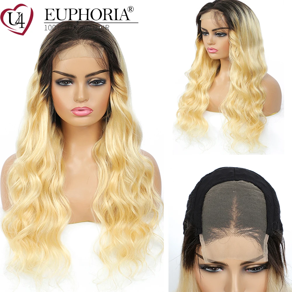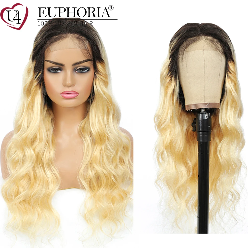 Объемная волна человеческих волос парики шнурка эффектом деграде (переход от темного к 613 блондинка 13x4 кружева передние парики бразильский Реми человеческие волосы 4x4 кружева закрытие парик EUPHORIA