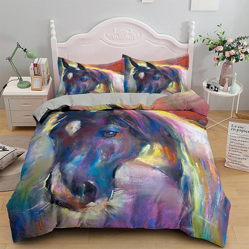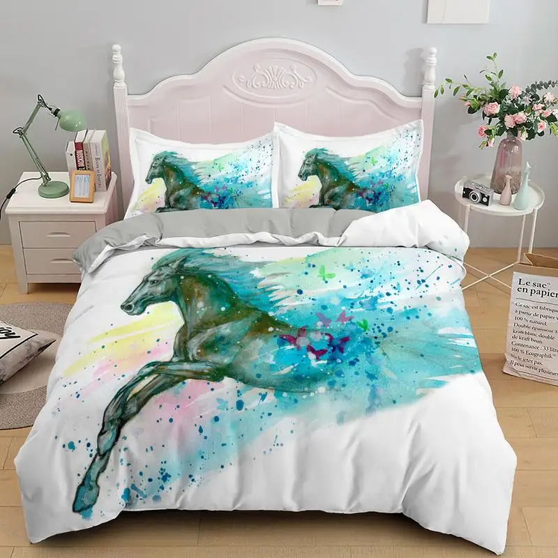 Комплект постельного белья с пододеяльником и пододеяльником с 3D рисунком лошади