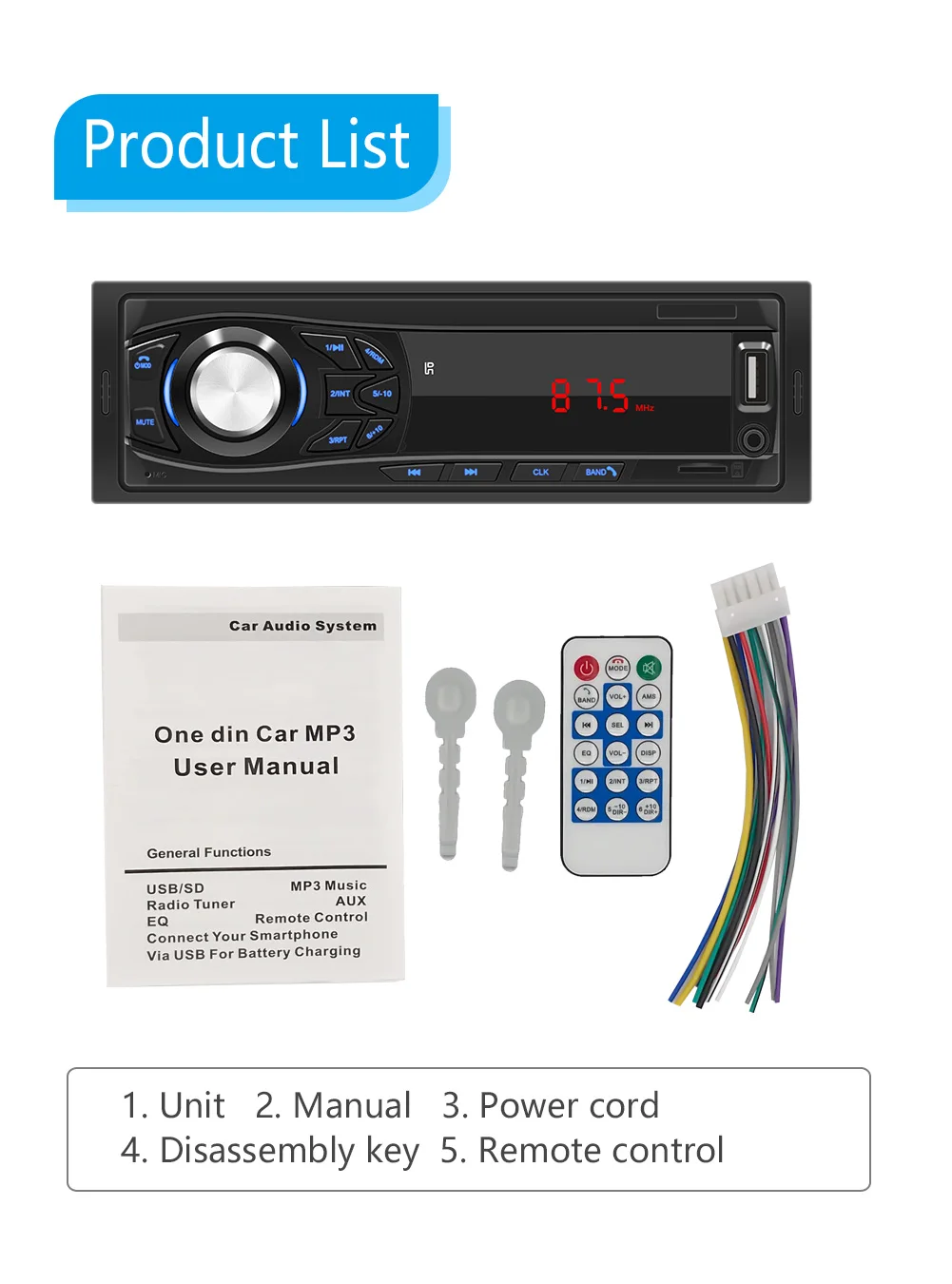 Автомобильный стерео проигрыватель 12 В, Bluetooth, FM-радио, MP3, аудиоплеер, зарядное устройство 5 В, USB, TF, AUX, автомобильная электроника, сабвуфер, 1 DIN, Авторадио