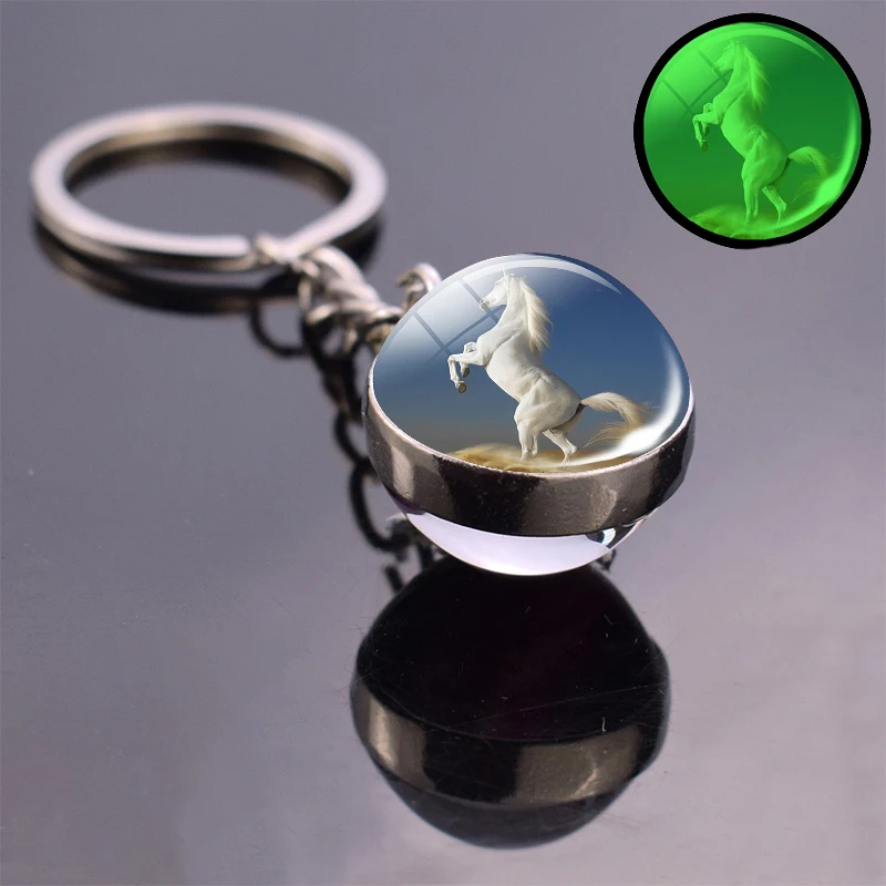 Светящаяся лошадь стеклянный шар брелок Crazy Horse светящиеся украшения двухсторонний стеклянный брелок для ключей Брелоки с животными держатель подарки для мужчин