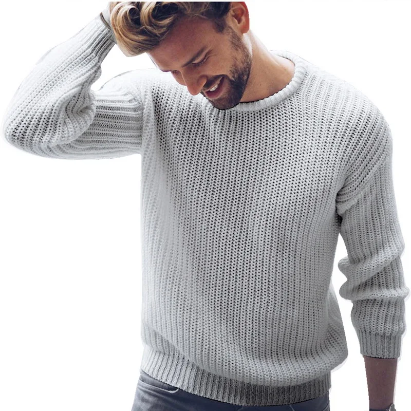 Новинка; Повседневный Однотонный свитер с круглым вырезом для мужчин пуловер Свитера Повседневный джемпер для мальчиков трикотажные свитера, пуловеры корейский Стиль одежда размера плюс