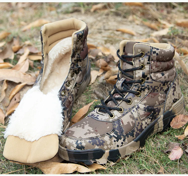 Ботинки мужские тактические с мехом, теплые ботинки, камуфляжная обувь, Военные кроссовки, рабочая обувь, уличные боевые ботинки, зима 2019